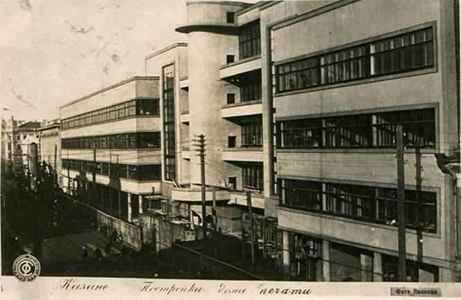 Дальше были всякие сложности с землеотводом, со сроками строительства, со сметой... Строительство Дома печати в Казани заняло несколько лет и было закончено лишь в 1937 г. Помимо полиграфических производств, в этом доме размещалось множество редакций.