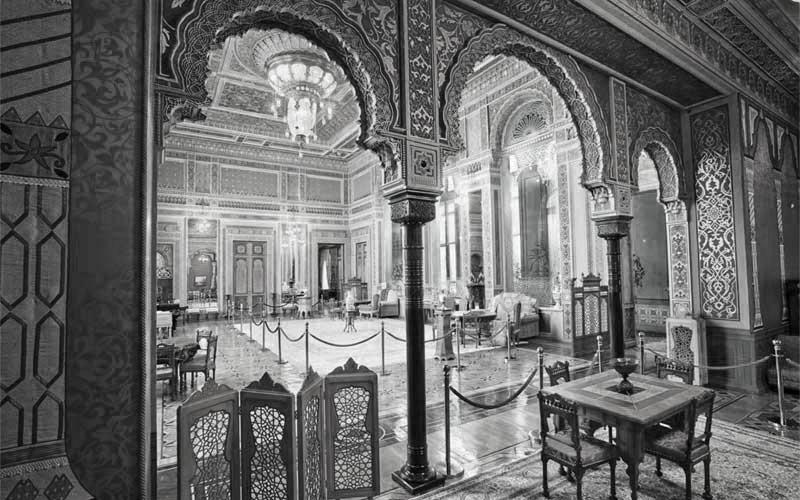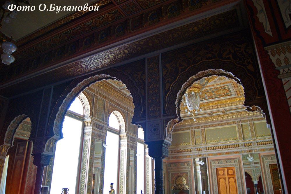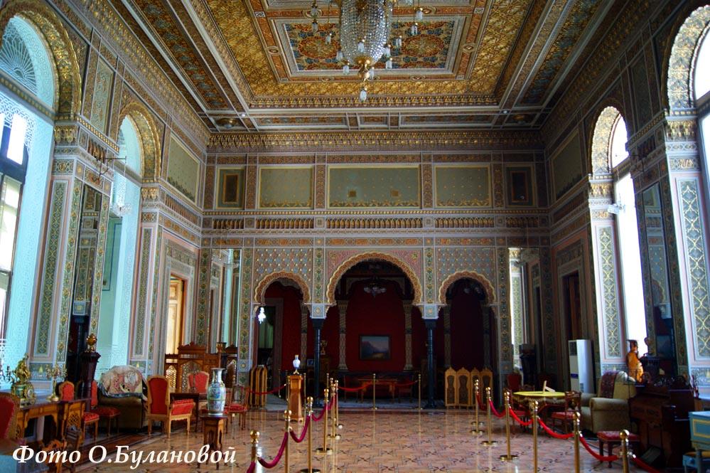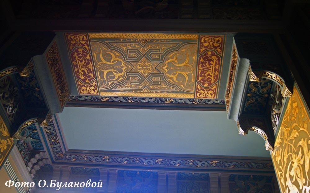 Для украшения самого богатого и знаменитого зала дворца, Восточного, не имеющего аналога на всей территории Ближнего Востока, было использовано 8 кг сусального золота, половина ушла на декор потолка.