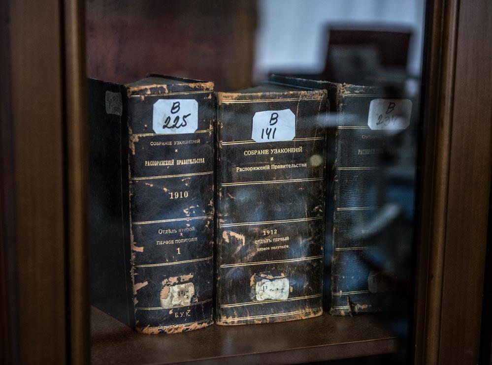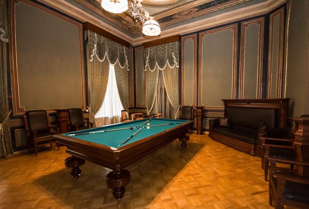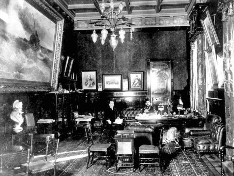 В небольшой библиотеке Тагиева до наших дней "дожили" лишь пара тяжеленных книг: "Собрание законов Российской империи" и "Распоряжения царского правительства". Здесь, сидя в удобных креслах, каждое утро помощники миллионера читали ему вслух новости из свежих газет, - читать и писать Тагиев не умел. Он ведь родился в бедной семье.