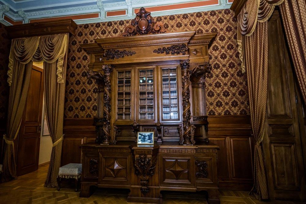 У этого экспоната своя необычная история: после прихода Советской власти буфет исчез из дома и спустя десятилетия был совершенно случайно обнаружен в одном из столичных ресторанов: на его столешнице повара резали мясо и овощи. Руководству музея удалось вернуть экспонат в родные стены. Правда, пришлось полностью поменять верхнюю панель, но и сегодня перед этим величественным буфетом замирают все посетители музея.