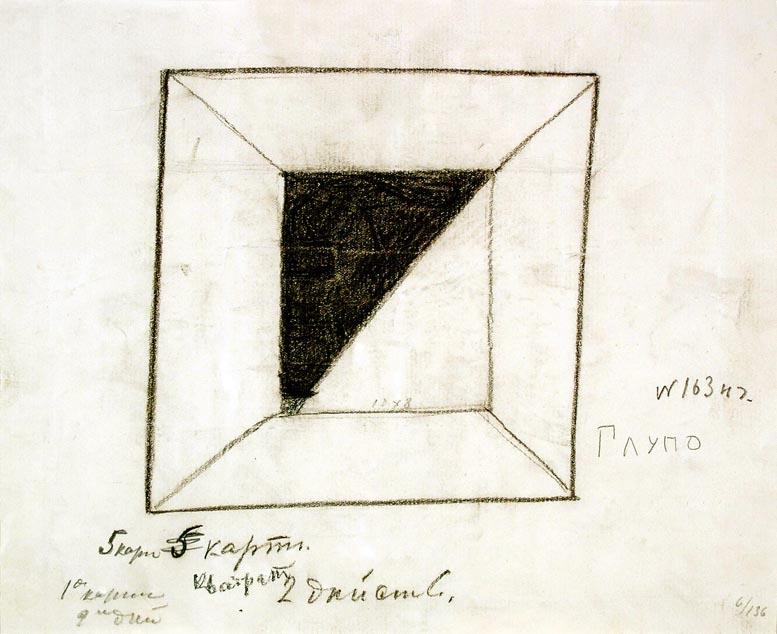Есть и такая версия появления одиозной работы: для футуристической выставки "0,10", открывавшейся в Петербурге 19 декабря 1915 года, Малевич должен был написать несколько картин.
