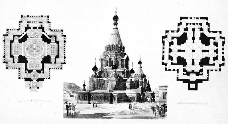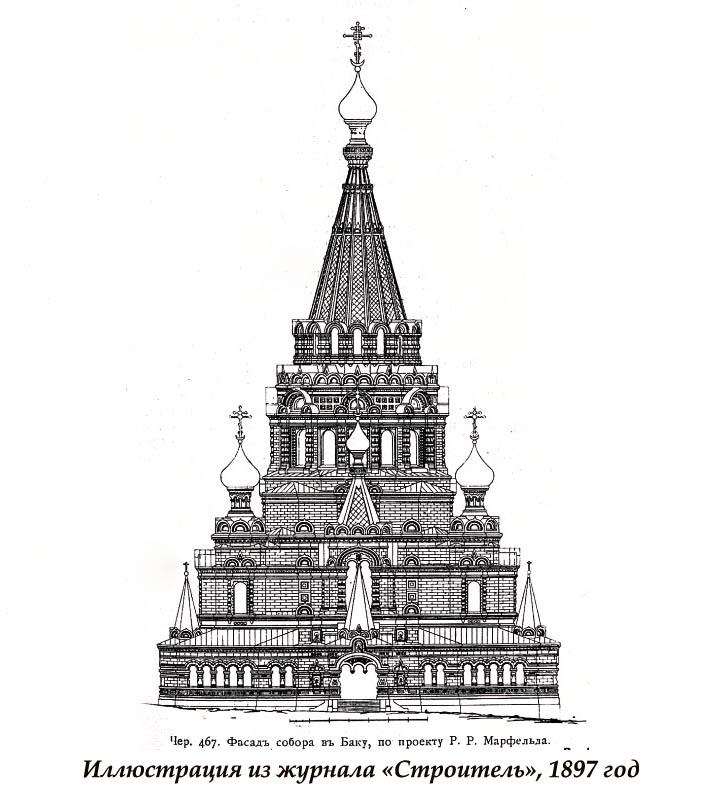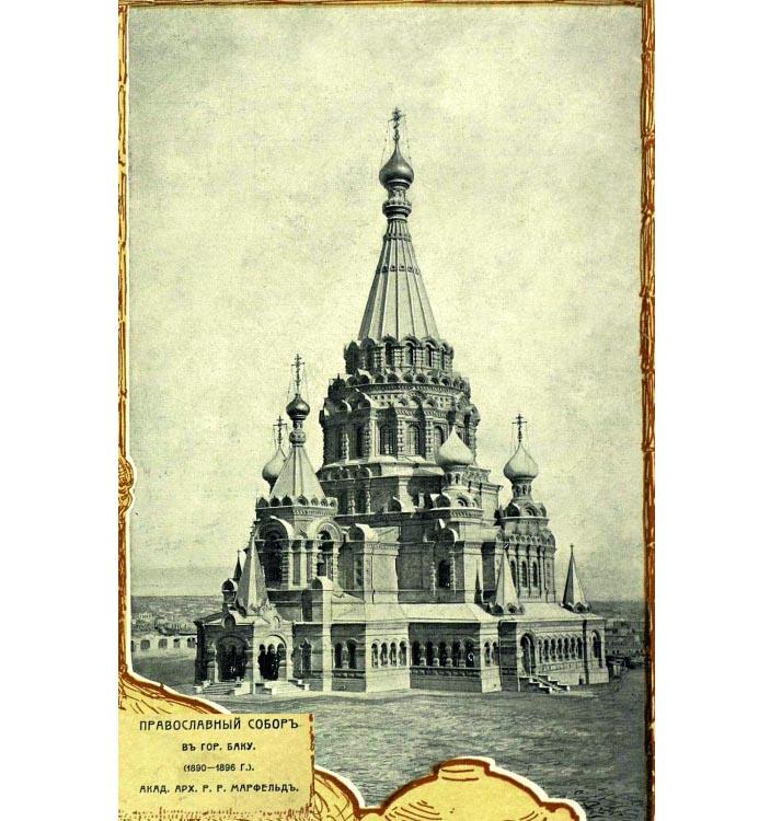 Проект храма, в который вмещалось бы 1700 человек, принадлежал академику-архитектору Роберту Марфельду (1852-1921), уроженцу Баку, сыну главного врача Каспийского флотского экипажа. Этот проект был опубликован в 1889 г. в журнале "Зодчий" и им восхищалась вся Россия, потому что собор был прекрасен даже на отмывках.