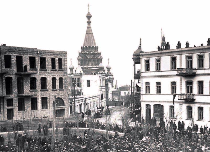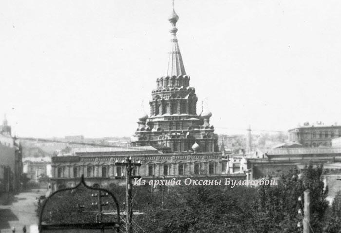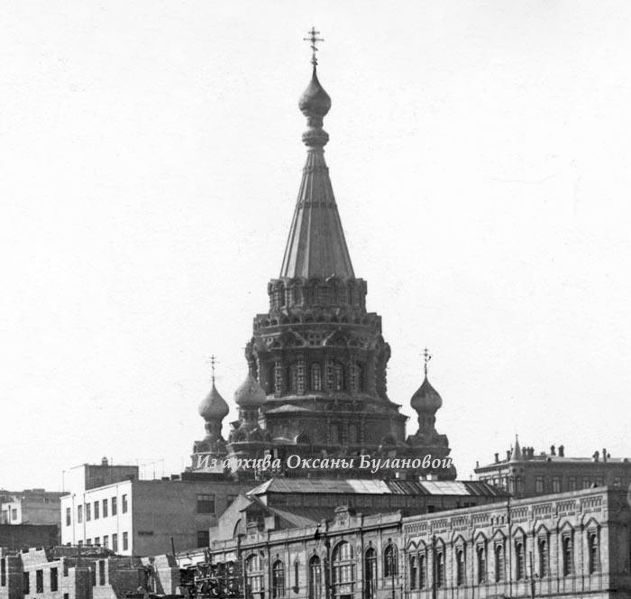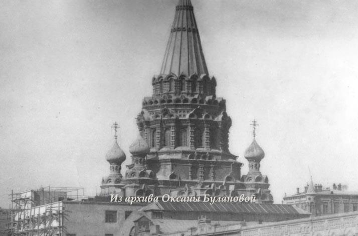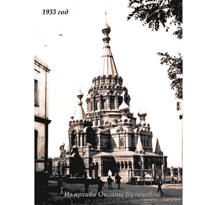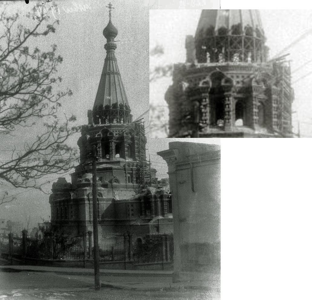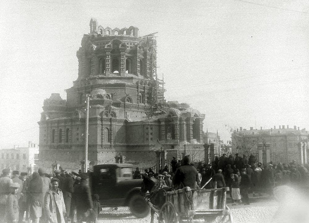 Но потом, на волне борьбы с религией его снесли. Случилось это по одним данным в 1936 г., по другим - в 1937-м. Акт вандализма фиксировался на фотопленку. На следующем снимке (который некоторыми исследователями почему-то считается фотошопом) видно, как начали разбивать свод шатра собора - чтобы потом было проще его свалить.
