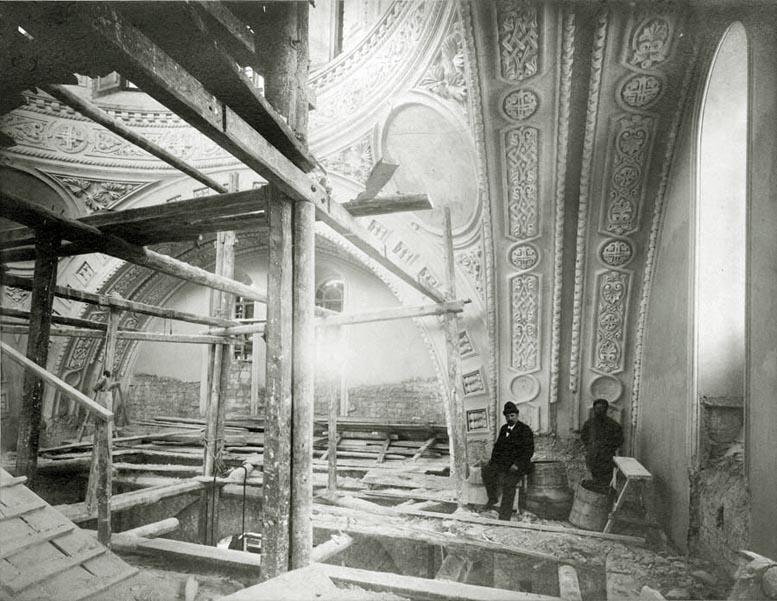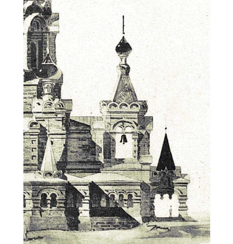 Молодой архитектор работал не покладая рук. Колоссальный творческий труд, вложенный Гославским в строительство, дает право считать автором проекта и его самого. Ведь Марфельд выслал из Петербурга лишь эскизы и отмывки собора без каких-либо чертежей, все остальное стало проблемой Гославского.