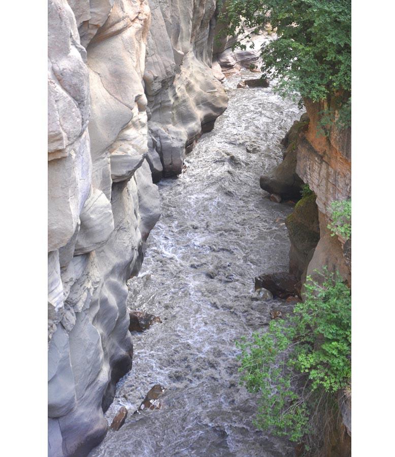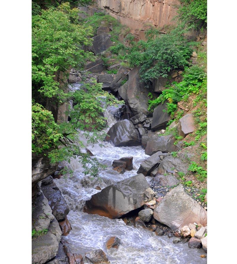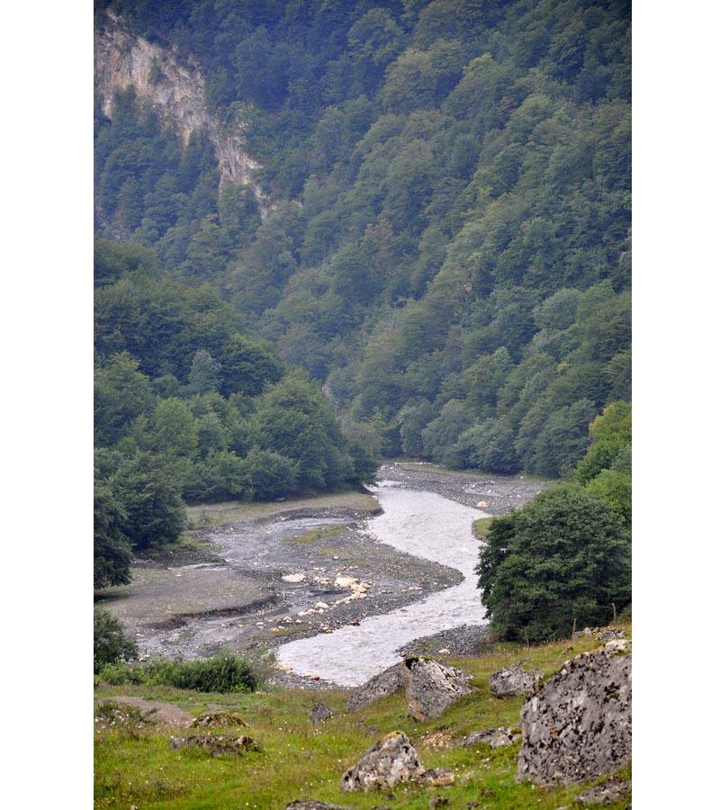 В некоторых местах она бежит по дну глубокого ущелья и шумит, шумит внизу...