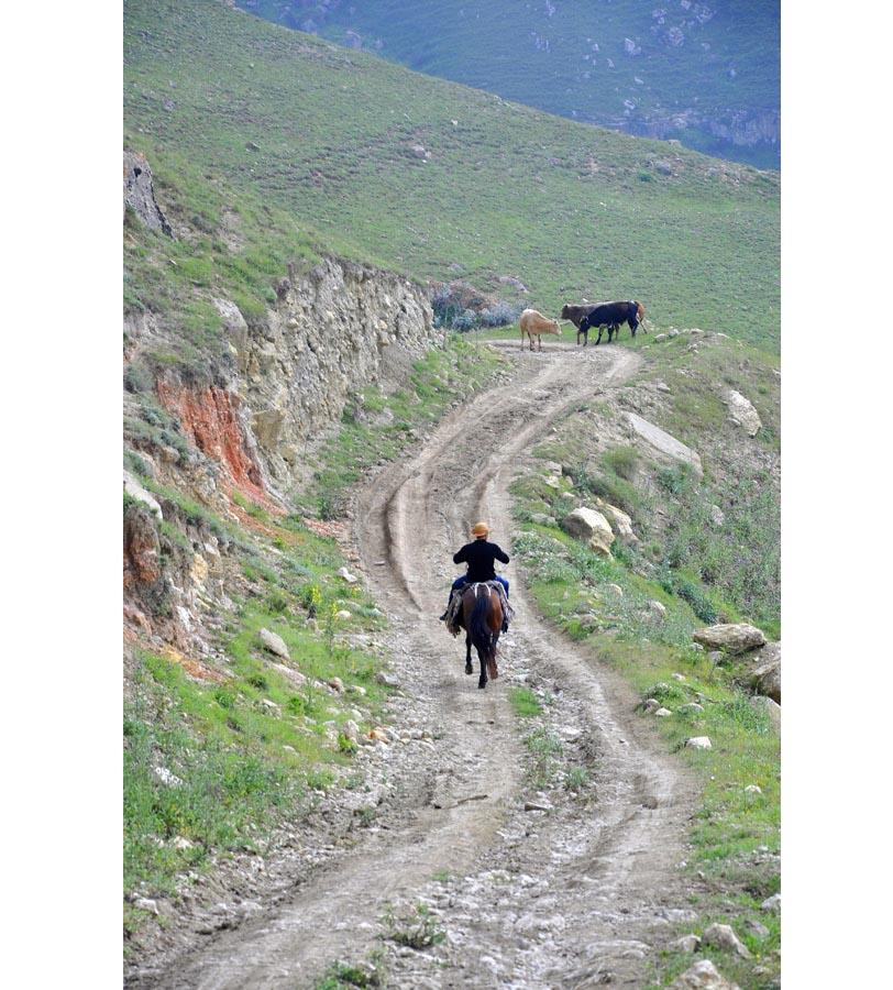 Слева и справа открываются идиллические картины: стадо овец, рассыпанное розоватыми точками на весенней изумрудно-зеленой траве склонов, мирно пасущиеся лошади, без упряжи и не стреноженные - на фоне все тех же клочков облаков, умные козы, подталкивающие рогами овец или сгибающие для них ветку кустарника.