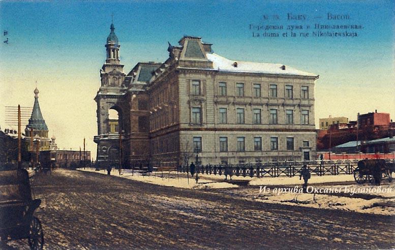 В 1899 г. - здание на углу Мариинской (Расула Рзы) и Колюбакинской (Нигяр Рафибейли). Его в Баку прозвали "домом с ангелочками".