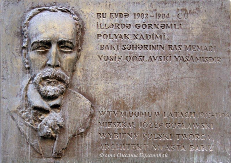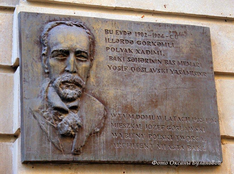 Потом они переехали на Армянскую, в советское время ул. Горького, сейчас - ул. Мирзы Ибрагимова. В 2006 г. по указу Ильхама Алиева на доме №11 по ул. Мирзы Ибрагимова была установлена мемориальная доска: "Здесь в 1902-1904 годах жил видный польский специалист, главный архитектор города Баку Юзеф Гославский". Очень символично, что на церемонии открытия присутствовала супруга президента Польши Мария Качиньская, сказавшая немало теплых слов.