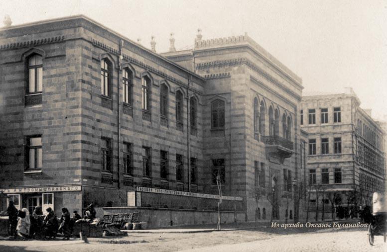 В 1893-1893 гг. были возведены два здания на Николаевской (Истиглалият) - двухэтажное и трехэтажное. К двухэтажному позднее был пристроен третий этаж.
