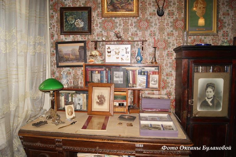 В квартире есть кабинет Гославского. Он полностью сохранил дух эпохи и своего хозяина. Все предметы в нем подлинные и находились в личном пользовании зодчего. Особую ценность представляют письменный стол и настольная лампа с "классическим" зеленым абажуром, диван, гигантское, около четырех метров в высоту зеркало, выписанное Гославским из Парижа, буфет, инкрустированный перламутром. Про него известный итальянский архитектор Ренато Форменти сказал, что это уникальный итальянский буфет, изготовленный в Вероне в XVIII в. из красного дерева. Хозяева квартиры сумели даже сохранить оригинальные обои начала ХХ в.