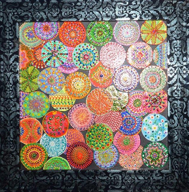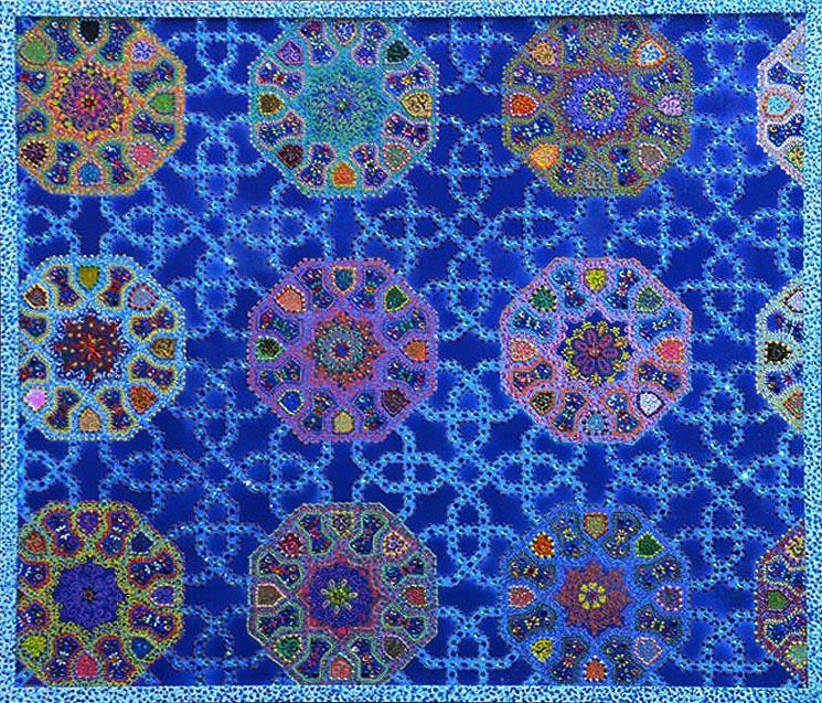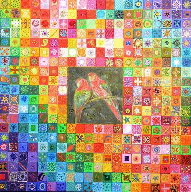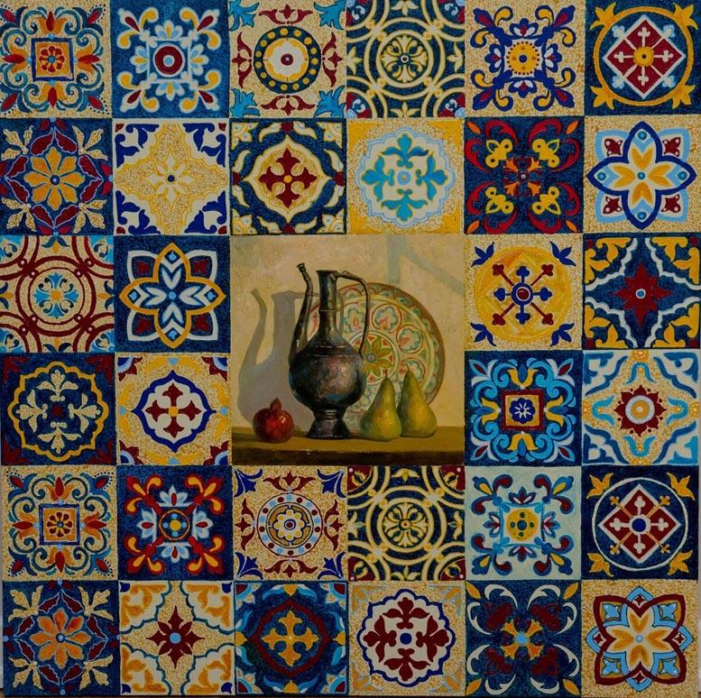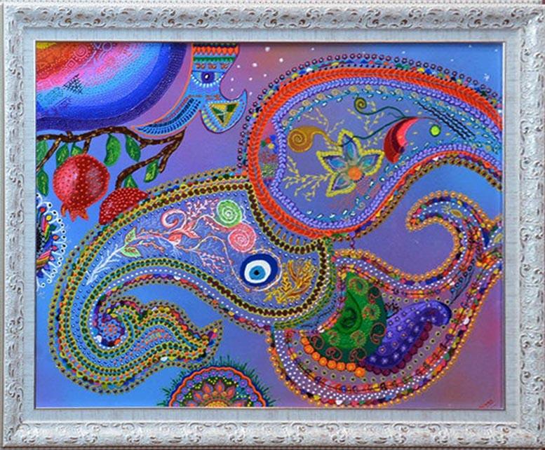 Практически все творчество Милены Набиевой - это узоры, орнаменты. И если в технике и в сочетании художественных материалов Милена на самом деле ни на кого не похожа, то узоры - мотив традиционный для восточной и тюркской живописи и изобразительного искусства.