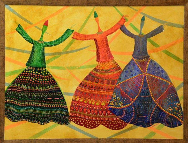 Кстати, яркий и солнечный колорит художницы - тоже отражение древних тюркских живописных традиций. Даже если очень постараться, в работах старых мастеров, в книжных миниатюрах, в узорах ковров, в вышивке на одежде, в росписи посуды не найдешь темных грустных тонов. В этом плане тюркские традиции близки африканским с их торжеством теплых и радостных оттенков.