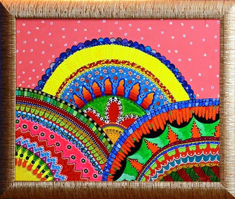 Что касается сюжетов, то они у Милены Набиевой самые разные, но во всех них присутствуют узоры. Без них она не мыслит своего существования. Узоры - часть ее самой. По ее словам, художник отражает на полотнах не то, что его волнует, а то, что творится у него на душе в момент написания картины. "Мы живем в нелегкое время, - говорит Милена. - Людям не хватает добра, понимания, красочности, поэтому я стараюсь вложить в свои картины все самое прекрасное, чтобы они украсили их жизнь. В моих работах много солнца, радуги, детства, так быстро уходящего от нас".