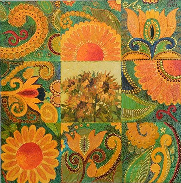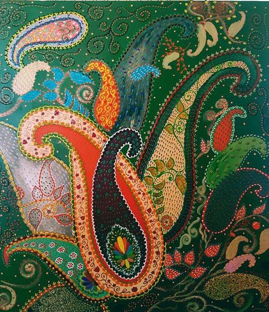 Глубокая древняя смысловая нагрузка буты очень тонко ощущается молодой художницей. В каждом произведении бута у нее - немного разная, имеет свое настроение, свой силуэт, свое окружение. Бута словно произрастает в ее полотнах из других элементов и сама одновременно является порождением новых мотивов.