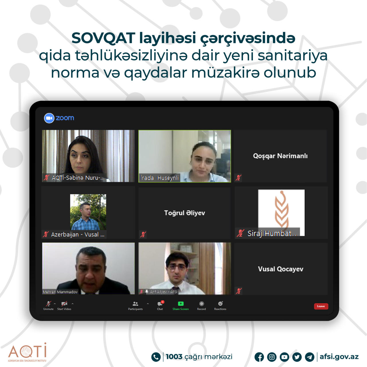 Azərbaycan Qida Təhlükəsizliyi İnstitutunun (AQTİ) SOVQAT layihəsi çərçivəsində keçirilən budəfəki “Peşəkarlarla görüş” saatında “01.04.2021 tarixindən qüvvəyə minən qida təhlükəsizliyinə dair texniki normativ hüquqi aktlar” müzakirə olunub.