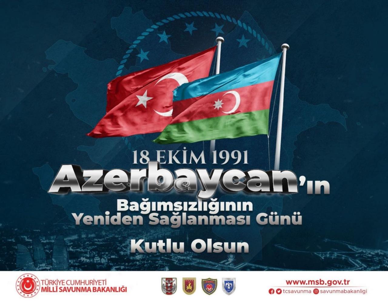 18 Oktyabr 2021 16:12 DiasporaTürkiyənin Milli Müdafiə Nazirliyi Azərbaycanı Müstəqilliyin Bərpası Günü münasibətilə təbrik edib.