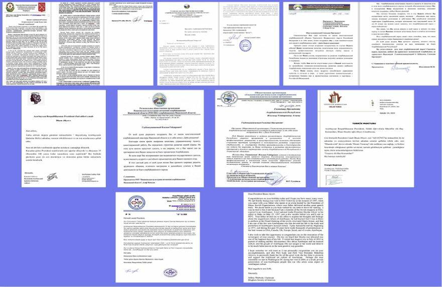 Rusiyanın "Sankt-Peterburq və Leninqrad vilayəti üzrə Azərbaycanlıların Milli-Mədəni Muxtariyyəti" şəhər ictimai təşkilatının sədri Vaqif Məmişovun adından dövlət başçımıza ünvanlanan məktubda Sankt-Peterburqda yaşayan azərbaycanlıların hər zaman Prezident İlham Əliyevin yanında olduğu və onu dəstəklədiyi bildirilib: "İndi dünyanın hər yerindən çoxlu sayda təbriklər alırsınız, şəxsim və "Sankt-Peterburq və Leninqrad vilayəti üzrə Azərbaycanlıların Milli-Mədəni Muxtariyyəti" şəhər ictimai təşkilatı adından biz də bu təbriklərə qoşuluruq. Siz milyonlarla soydaşımızın arzusunu gerçəkləşdirmisiniz. Əsası qüdrətli lider Heydər Əliyev tərəfindən qoyulan ənənələri davam etdirməklə ölkədən kənarda yaşayan soydaşlarımızın daim qayğısına qalırsınız. Rusiyada yaşayan azərbaycanlılara göstərdiyiniz diqqət, hər bir uğurunuz bizə böyük sevinc bəxş edir. Sizə və yaxınlarınıza səmimi qəlbdən möhkəm cansağlığı, sülh, firavanlıq və Azərbaycan dövlətinin və xalqının rifahı naminə nailiyyətlər əldə etməyi arzulayırıq. Biz hər zaman Sizi dəstəkləmişik və bundan sonra da dəstəkləyəcəyik!".