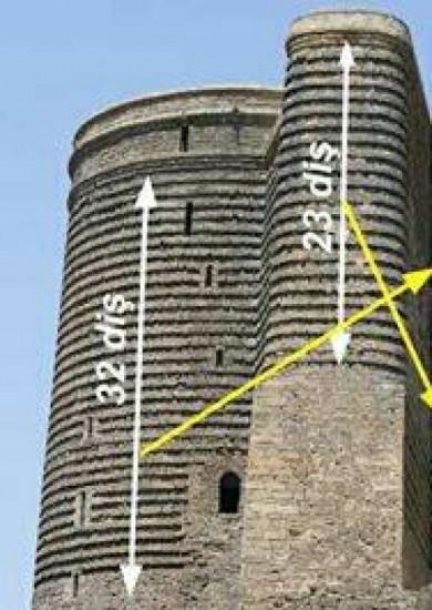 Qalada diqqət çəkən məqamlardan biri gövdə hissəsində 32 diş, çıxıntı (qol) hissəsində isə, 23 diş olmasıdır. Elə isə: