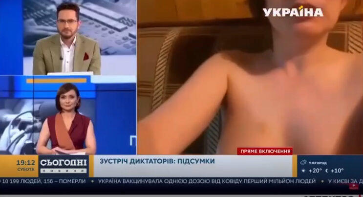 Çılpaq qadın "Ukrayna" telekanalının CANLI YAYIMINDA