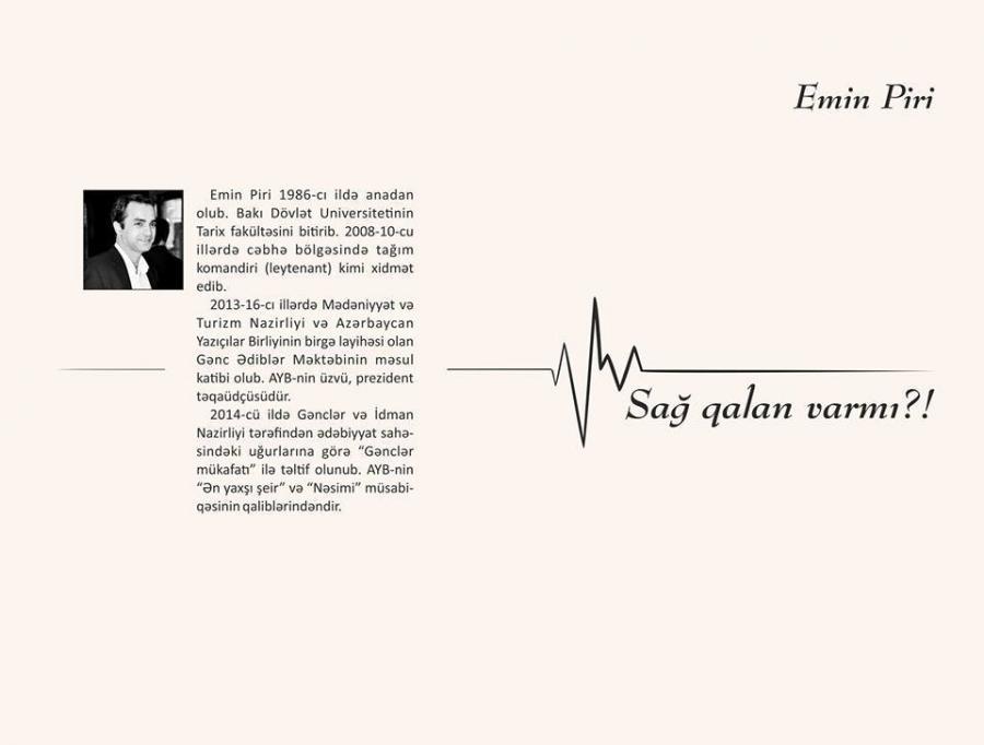 Kitab "Ədiblər yayımları" çərçivəsində işıq üzü görüb. Məlumat üçün bildirək ki, "Sağ qalan varmı" layihənin ilk kitabıdır.