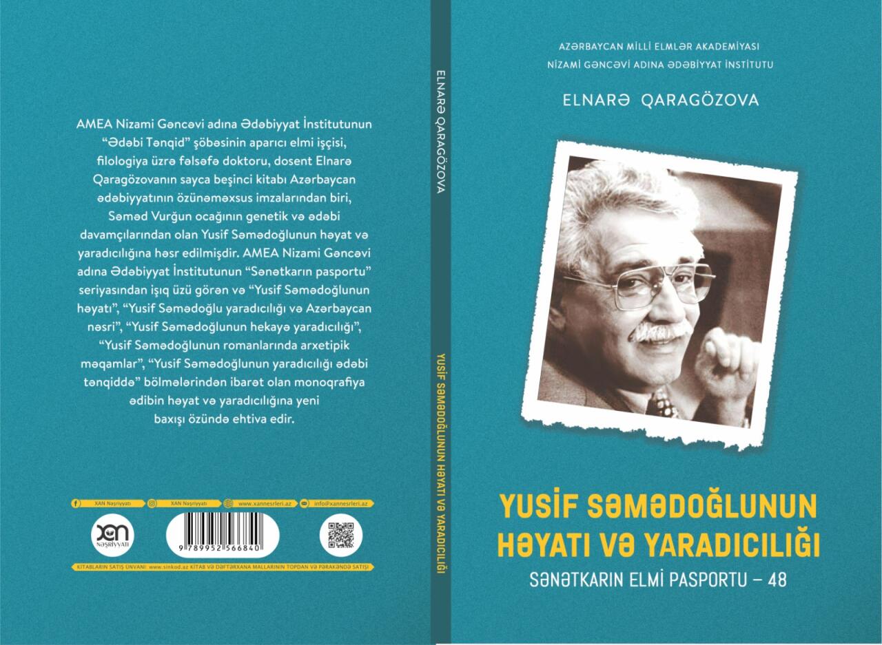 1 Mart 2024 14:53 ƏdəbiyyatAMEA Nizami Gəncəvi adına Ədəbiyyat İnstitutunun "Ədəbi Tənqid" şöbəsinin aparıcı elmi işçisi, filologiya üzrə fəlsəfə doktoru, dosent Elnarə Qaragözovanın sayca beşinci kitabı - "Yusif Səmədoğlunun həyatı və yaradıcılığı" monoqrafiyası işıq üzü görüb. "Sənətkarın elmi pasportu seriyası"nın 48-ci nəşri olan kitab Ədəbiyyat İnstitutunun Elmi Şurasının 5 dekabr 2023-cü il tarixli iclasının 6 saylı qərarı ilə nəşr edilib.