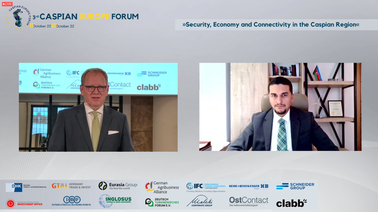 11 Oktyabr 2022 15:40 EnergetikaBərpa Olunan Enerji Mənbələri Dövlət Agentliyinin direktor müavini Kamran Hüseynov Almaniyanın paytaxtı Berlin şəhərində hibrid formatda keçirilən 3-cü Xəzər Avropa Forumunda iştirak edib.