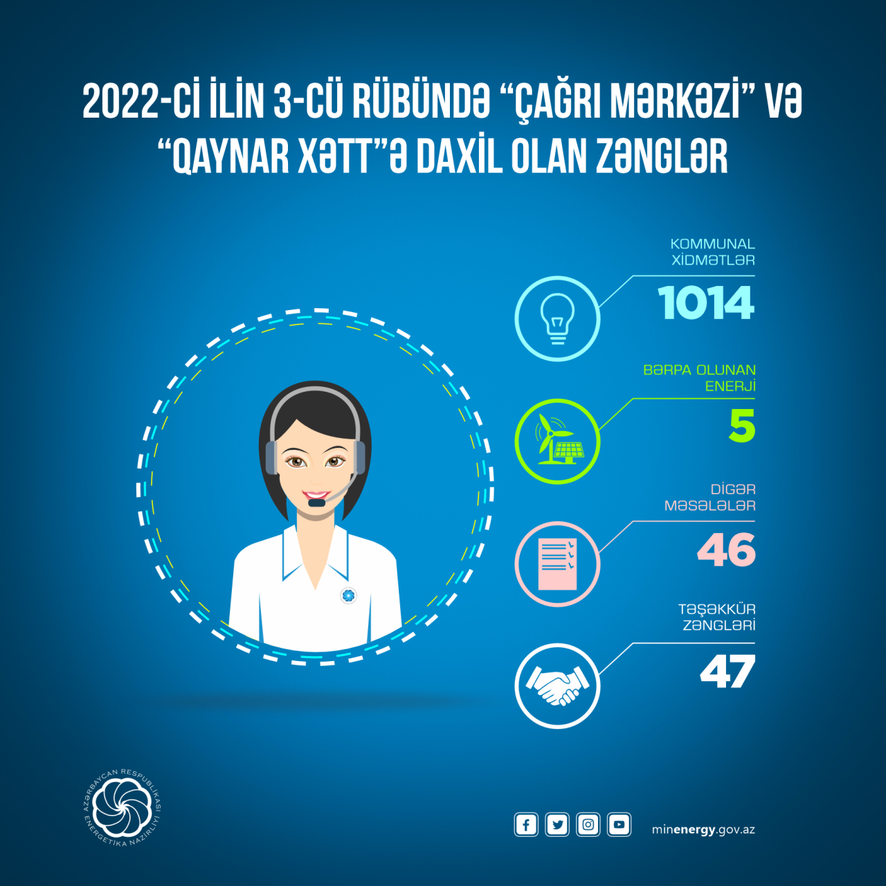 Xatırladaq ki. vətəndaşların müraciətləri Energetika Nazirliyinin (012) 598-16-55 "Qaynar Xətt"i, "974" Çağrı Mərkəzi, minenergy.gov.az internet səhifəsi və http://[email protected] elektron poçt ünvanı vasitəsilə qəbul edilir.