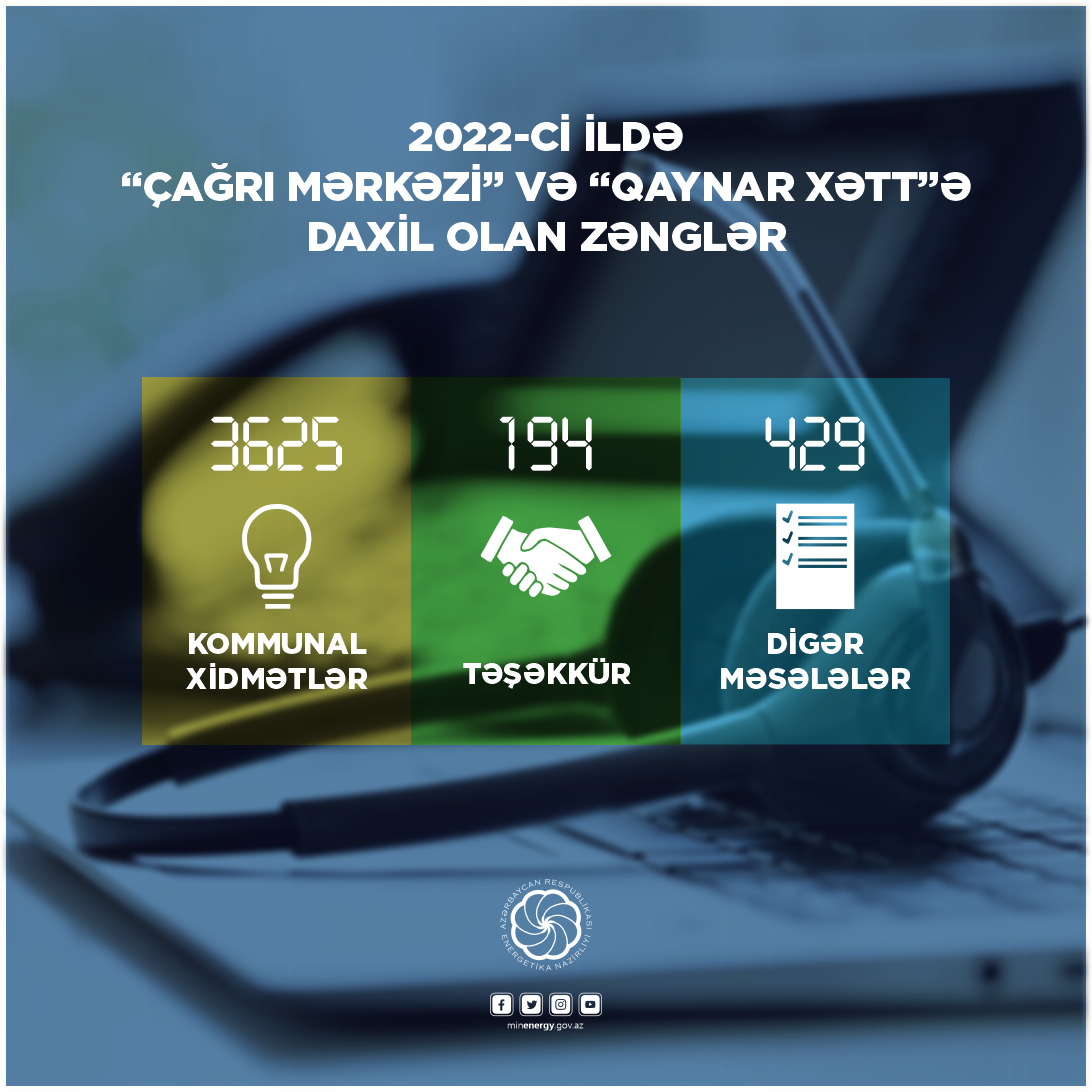 Bunlardan 3625-ni elektrik və istilik enerjisi, təbii qaz təchizatı, 194-nü təşəkkür xarakterli, 429-nu isə digər məsələlərlə bağlı müraciətlər təşkil edib.