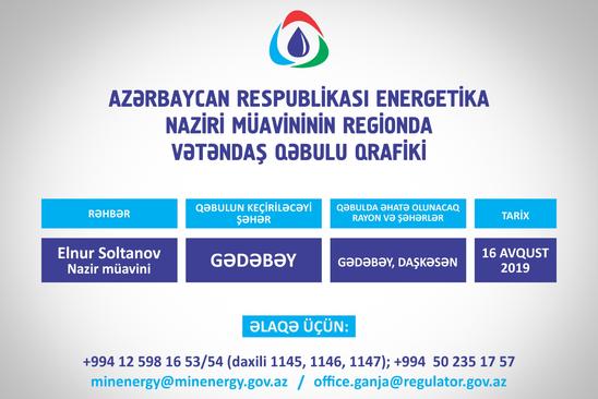 Energetika nazirinin müavini Gədəbəydə vətəndaşları qəbul edəcək