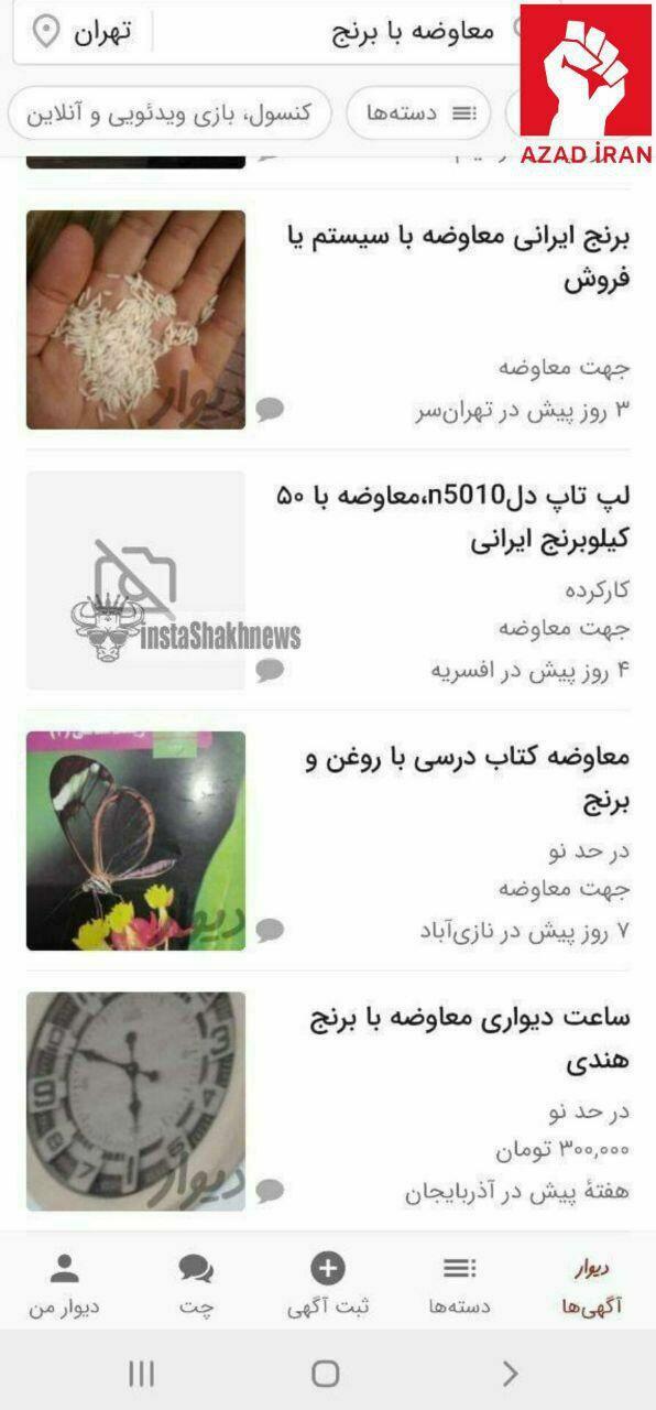30 Dekabr 2022 12:25 GüneyXameneinin diktaturası altında olan İran əhalisi acından ölməmək üçün məişət əşyalarını ərzaqla barter edir.
