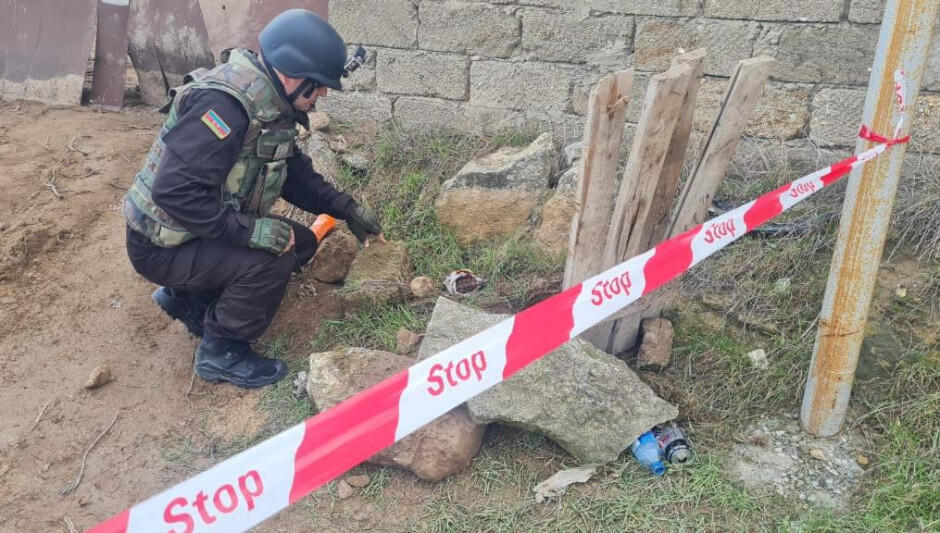 Bildirilib ki, hüquq mühafizə orqanı əməkdaşları ilə birgə ərazidə müvafiq təhlükəsizlik tədbirləri görüldükdən sonra hadisə yerinə baxış zamanı aşkar edilmiş sursatın döyüş tətbiqinə yararlı 1 ədəd partladıcısı üzərində olan F-1 əl qumbarası olduğu müəyyən edilib.