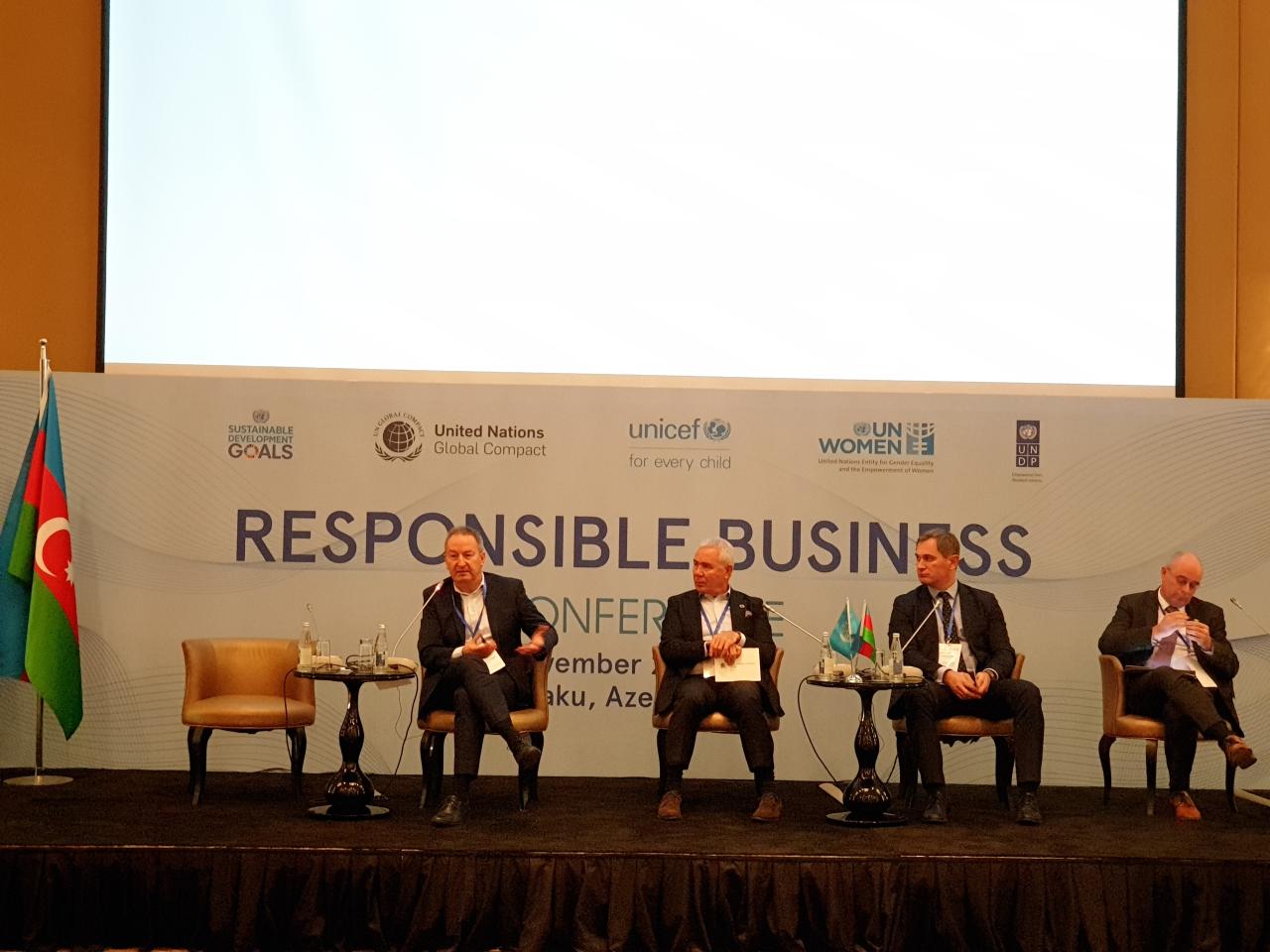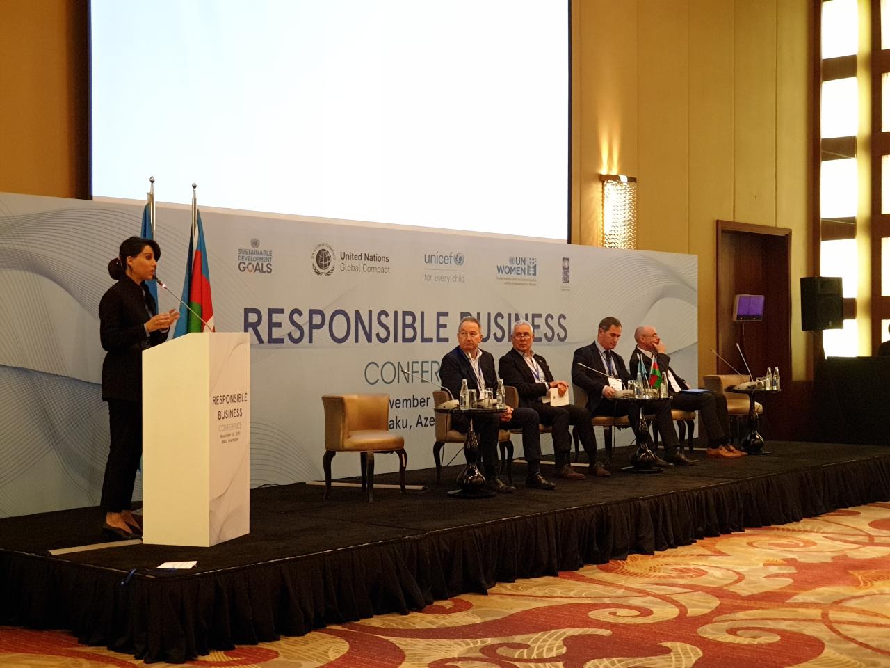 Olaylar.az xəbər verir ki, BMT-nin rezident əlaqələndiricisinin ofisi, UNİCEF, BMT-nin Qlobal Sazişi, BMT Qadınlar və BMT-nin İnkişaf Proqramının birgə təşkil etdiyi bu konfransda BMT-nin Qlobal Sazişinin 10 prinsipinin biznes siyasətləri və təcrübələrinə inteqrasiyasının əhəmiyyəti barədə danışılıb.