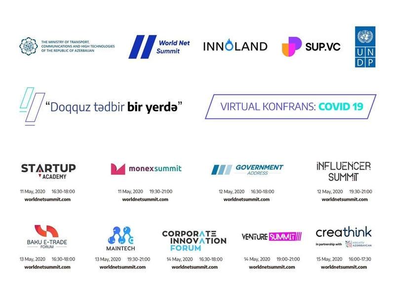 Nəqliyyat, Rabitə və Yüksək Texnologiyalar Nazirliyinin, Birləşmiş Millətlər Təşkilatının İnkişaf Proqramının, “SUP VC” və İnnoland İnkubasiya və Akselerasiya Mərkəzinin dəstəyi, “Net Summit LLC”nin təşkilatçılığı ilə 11-15 may tarixlərində “World Net Summit” onlayn konfransı keçiriləcək. Bu barədə məlumat “OLAYLAR”-a nazirlikdən verilib.