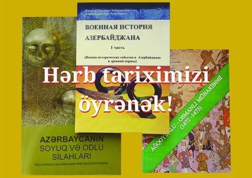 İyunun 21 – 23 tarixlərində AMEA Milli Azərbaycan Tarixi Muzeyində Azərbaycan hərb tarixinə həsr olunan kitabların “Hərb tariximizi öyrənək!” adlı sərgi keçiriləcək. Muzeydən “Olaylar” – a bildirilib ki, sərginin keçirilməsində məqsəd Azərbaycanın hərb tarixinə həsr olunmuş kitablar barədə geniş ictimaiyyəti məlumatlandırmaq, hərb tarixi sahəsində araşdırmalar aparan alim və müəllifləri ictimaiyyətlə, ilk növbədə gənclərlə tanış etmək.