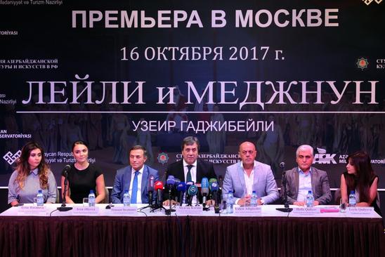 Oktyabrın 16 – da Moskva şəhərində, “Crocus City Hall” konsert zalında Məhəmməd Füzulinin eyni adlı faciəsinin motivləri əsasında, görkəmli bəstəkar Üzeyir Hacıbəylinin 1908 – ci ildə bəstələdiyi, Azərbaycan milli musiqi mədəniyyətinin incisi hesab olunan “Leyli və Məcnun” operası nümayiş olunacaq. Bununla bağlı, sentyabrın 21 – də Milli Konservatoriyada mətbuat konfransı keçirildi. Konfransda Milli Konservatoriyanın rektoru Siyavuş Kərimi, Opera və Balet Teatrının baş rejissoru Hafiz Quliyev, Xalq artistləri Mənsum İbrahimov, Yalçın Adıgözəlov, gənc xanəndə Arzu Əliyeva iştirak edirdilər. Premyera Mədəniyyət və Turizm Nazirliyinin dəstəyi ilə, Milli Konservatoriyanın və Moskvada fəaliyyət göstərən Azərbaycan Mədəniyyət və İncəsənət studiyasının təşkilatçılığı ilə baş tutacaq.