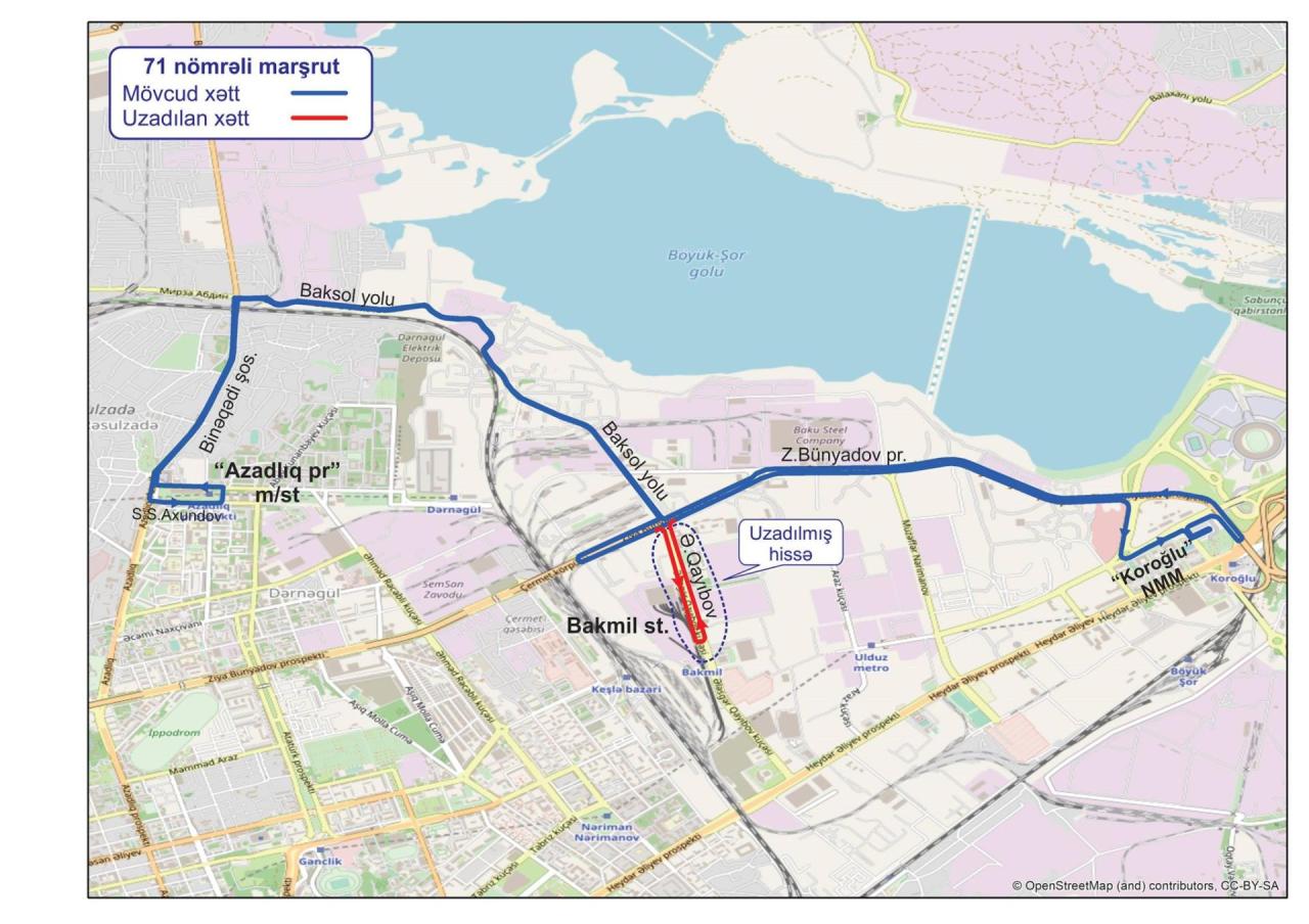 Bakı Nəqliyyat Agentliyindən verilən məlumata görə, dəyişikliyə əsasən, 71 nömrəli marşrut xətti üzrə avtobuslar Ziya Bünyadov prospektindən keçib Ələsgər Qayıbov küçəsinə daxil olmaqla yenidən Z.Bünyadov prospektinə çıxaraq yoluna davam edəcək.