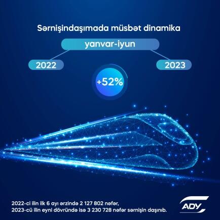 6 İyul 2023 11:17 İqtisadiyyat2023-cü ilin ilk 6 ayı ərzində Azərbaycan dəmir yolları ilə 3 230 728 nəfər sərnişin daşınıb. Bu, 2022-ci ilin müvafiq dövrü ilə müqayisədə 52% artım deməkdir.