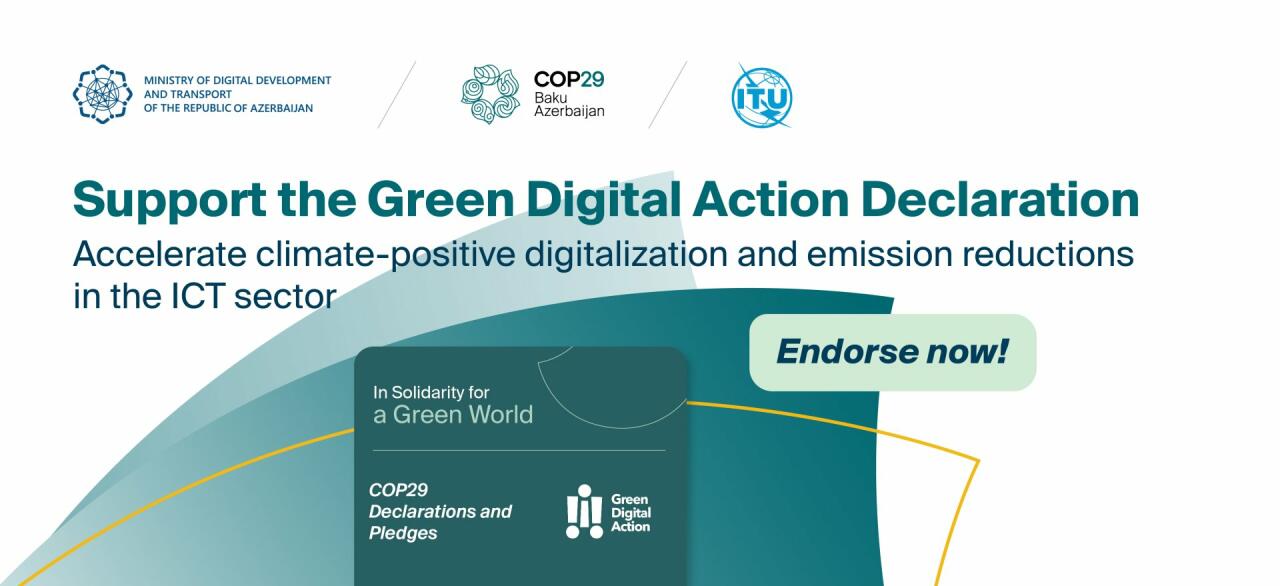 Bildirilib ki, Rəqəmsal İnkişaf və Nəqliyyat Nazirliyi, COP29 Sədrliyi və Beynəlxalq Telekommunikasiya İttifaqının birgə təşkil edəcəyi tədbirdə yekun sənəd olaraq Yaşıl Rəqəmsal Fəaliyyət üzrə Bəyannamə qəbul olunacaq.