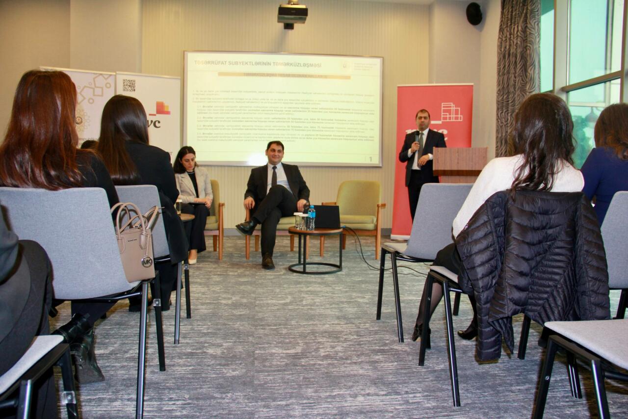 Tədbir çərçivəsində Antiinhisar Nəzarəti şöbəsinin müdiri Fuad Yadigarov "Yeni rəqabət qanunvericiliyində təmərküzləşmələrin tənzimlənməsi" mövzusunda təqdimatla çıxış edib. Tədbir iştirakçılarına təsərrüfat subyektlərinin təmərküzləşməsi, təmərküzləşmə hesab olunan hallar, razılıq alınması tələb olunan təmərküzləşmələr, eləcə də təmərküzləşmələrin qiymətləndirilməsi barədə ətraflı məlumat verilib.