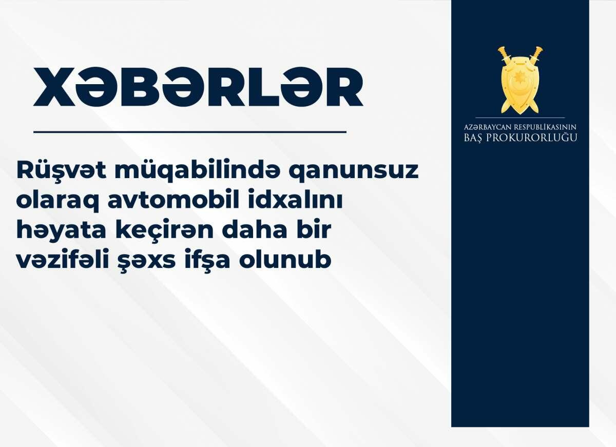 Rüşvət müqabilində qanunsuz olaraq avtomobil idxalını həyata keçirən daha bir vəzifəli şəxs ifşa olunub