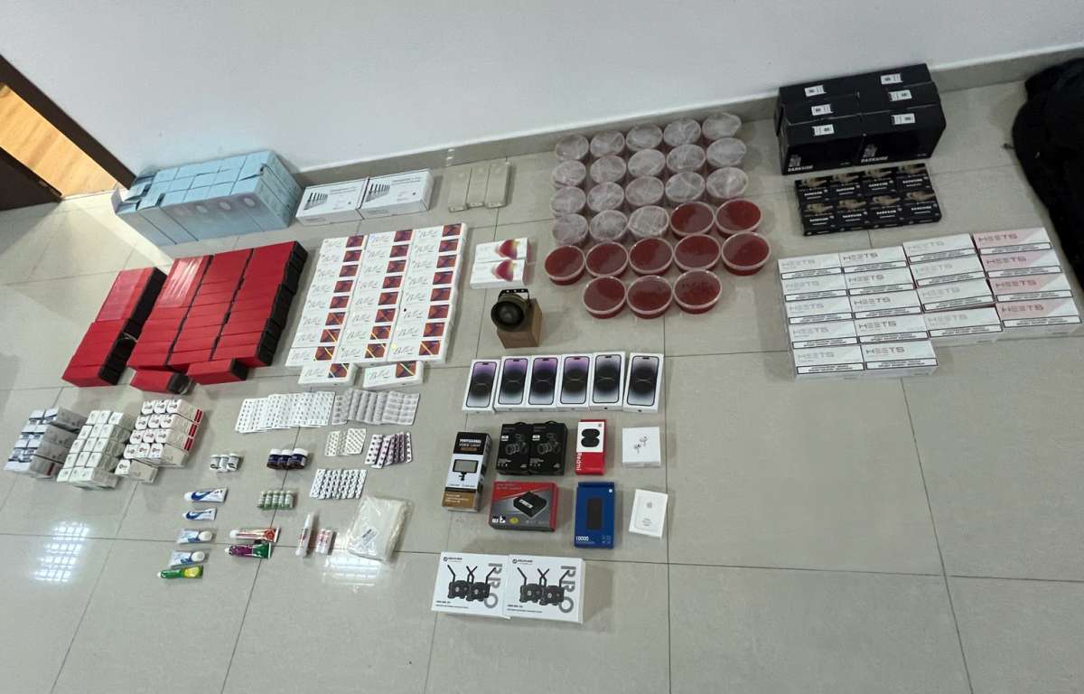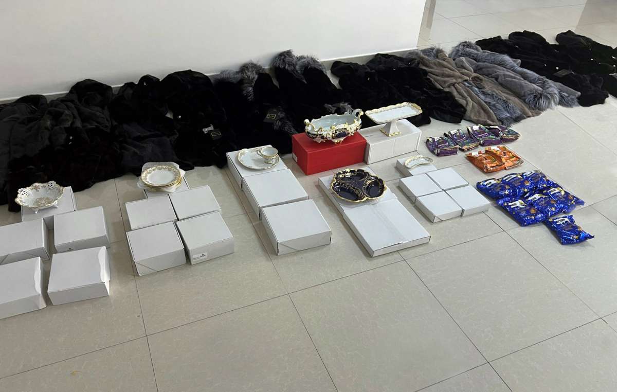 Baxış zamanı şəxsə məxsus çantalardan 13 ədəd xəz dəri məmulatları, 6 ədəd "İphone" markalı mobil telefon, 200 ədəd iynə (botoks), 85 ədəd müxtəlif növ dərman preparatları, 18 qutu elektron tütün məmulatı, 68 ədəd qəylan tütünü, 6 dəst Almaniya istehsalı olan qab-qacaq, müxtəlif növ elektronik əşyalar və yeyinti məhsulları aşkar edilib.