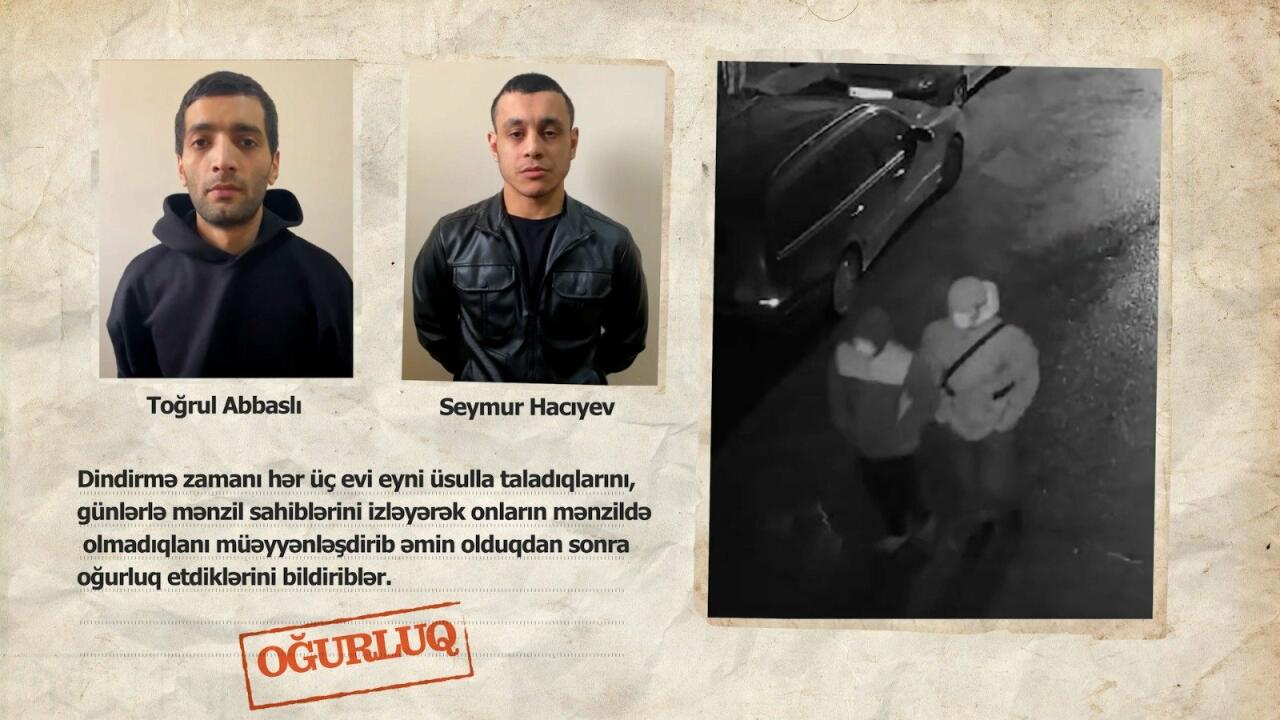 Onlar dindirmə zamanı hər üç evi eyni üsulla taladıqlarını, günlərlə mənzil sahiblərini izləyərək, axşam saat 19:00-22:00 aralığında onların mənzildə olmadıqlarını müəyyənləşdirib əmin olduqdan sonra oğurluq etdiklərini bildiriblər.