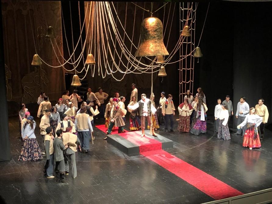15 Noyabr 2019 12:02 MədəniyyətAzərbaycan Dövlət Akademik Musiqili Teatrında 110-cu mövsümün ilk premyerası - böyük fransız yazıçısı, dramaturq Viktor Hüqonun "Paris Notr-Dam kilsəsi" romanının motivləri əsasında librettosu və quruluşu gənc rejissor Samir Qulamova məxsus olan "Paris Notr-Dama ithaf" tamaşası təqdim olunub.