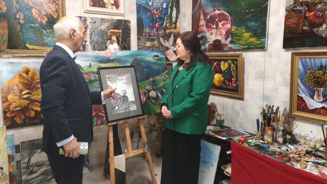 Bu görüş əsnasında şeirlər səsləndi, sanki bülbülün incə nəğmələri kimi mahnılar oxundu... Bəxtiyar Vahabzadə, Məmməd İsmayıl, Xudu Məmmədov və b. böyük Azərbaycan mütəfəkkirlərinin və mədəniyyət xadimlərinin adları xatırlandı. Biz mehriban ev sahiblərinin yaratdığı istilik və rahatlıqdan zövq alaraq, maraqlı söhbətlər etdik, bəzi tabloların yaranma səbəblərini, onların hekayətlərini dinlədik. Qədim Tula samovarından içilən çay süfrəsində söhbət səmimi şəkildə davam edir, ürəklərimiz sevinclə dolurdu.
