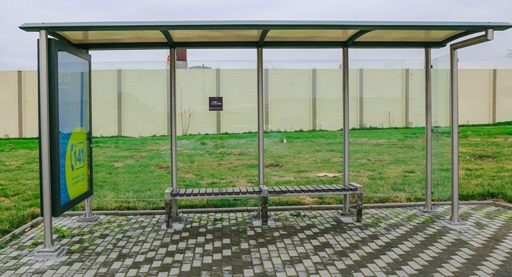 Güclü külək Bakıda avtobus dayanacağının pavilyonunu uçurub