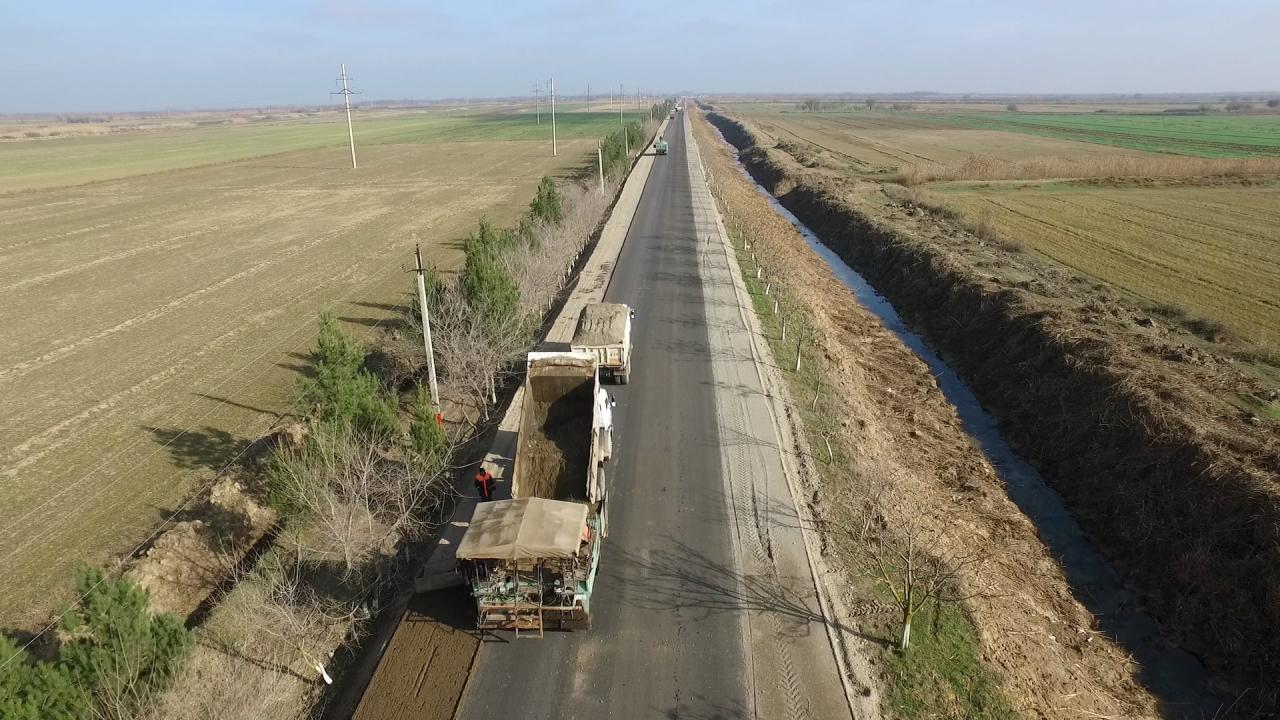 Layihəyə uyğun olaraq 6700 kub.m. həcmdə yararsız asfalt beton örtüyü sökülüb, torpaq yatağının 40 min kub.m həcmdə deformasiyaya uğramış hissələri ekskovatorla qazılaraq çıxarılıb. Qazılmış hissələrin yenidən bərpası və tələb olunan hissələrdə yolun torpaq yatağının yerin təbii relyef səviyyəsindən qaldırılması üçün 68 min kub.m həcmdə qrunt tökülərək yayılıb və kipləşdirilib, təbii karxana çınqılı materialından 38 min kub.m torpaq yatağının tikintisi işləri aparılıb.
