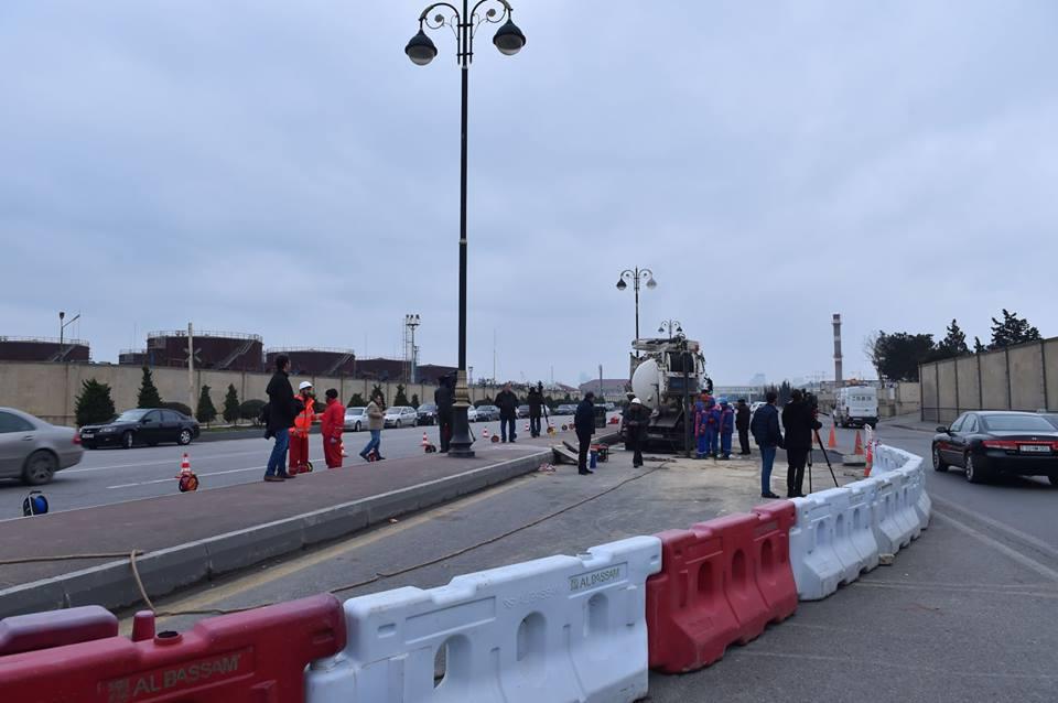 Prospektdə hərəkət məhdudlaşdırılması zamanı paralel olaraq Sahil kollektorunun yaxınlıqda yerləşən texnolji şaxtalarında da kompleks tədqiqat işləri aparılacaqdır.