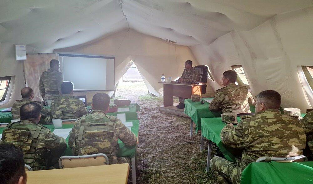Təlimlərdə müxtəlif tapşırıqların icrası üzrə fəaliyyətlər xəritə üzərində dəqiqləşdirilib, yaranmış taktiki şəraitə əsasən, qəbul edilmiş qərarlara dair komandirlərin məruzələri dinlənilib.