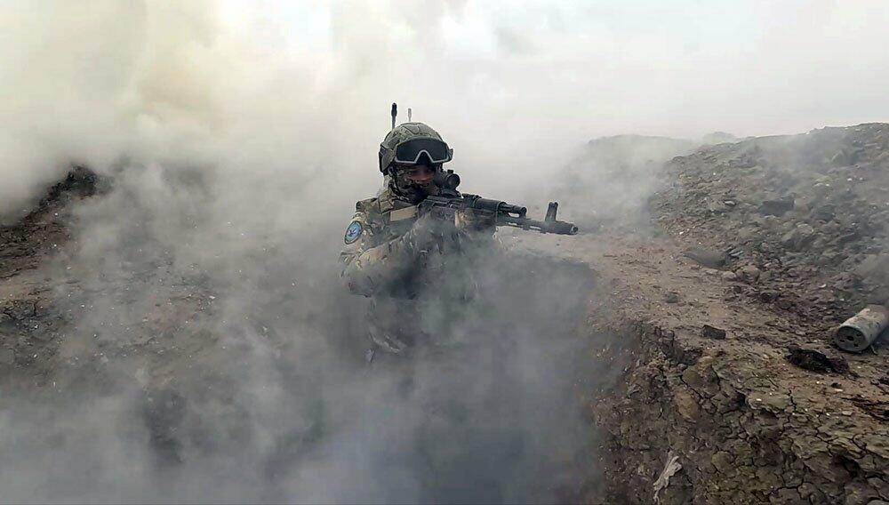 Спецназ с применением ударных БПЛА вывел из строя наблюдательные пункты и долговременные огневые точки условного противника, выполнив учебно-боевые задачи по внезапному проникновению на позиции мобильными группами с использованием аэрозольной завесы и защитных свойств местности, устройству засад и совершению налетов.