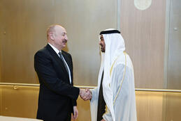 Президента Ильхама Алиева встретил президент Объединенных Арабских Эмиратов Шейх Мухаммед бен Заид Аль Нахайян.